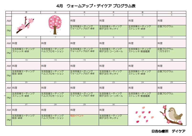 | 実施時間 | 月 | 火 | 水 | 木 | 金 | 土 | 日 |